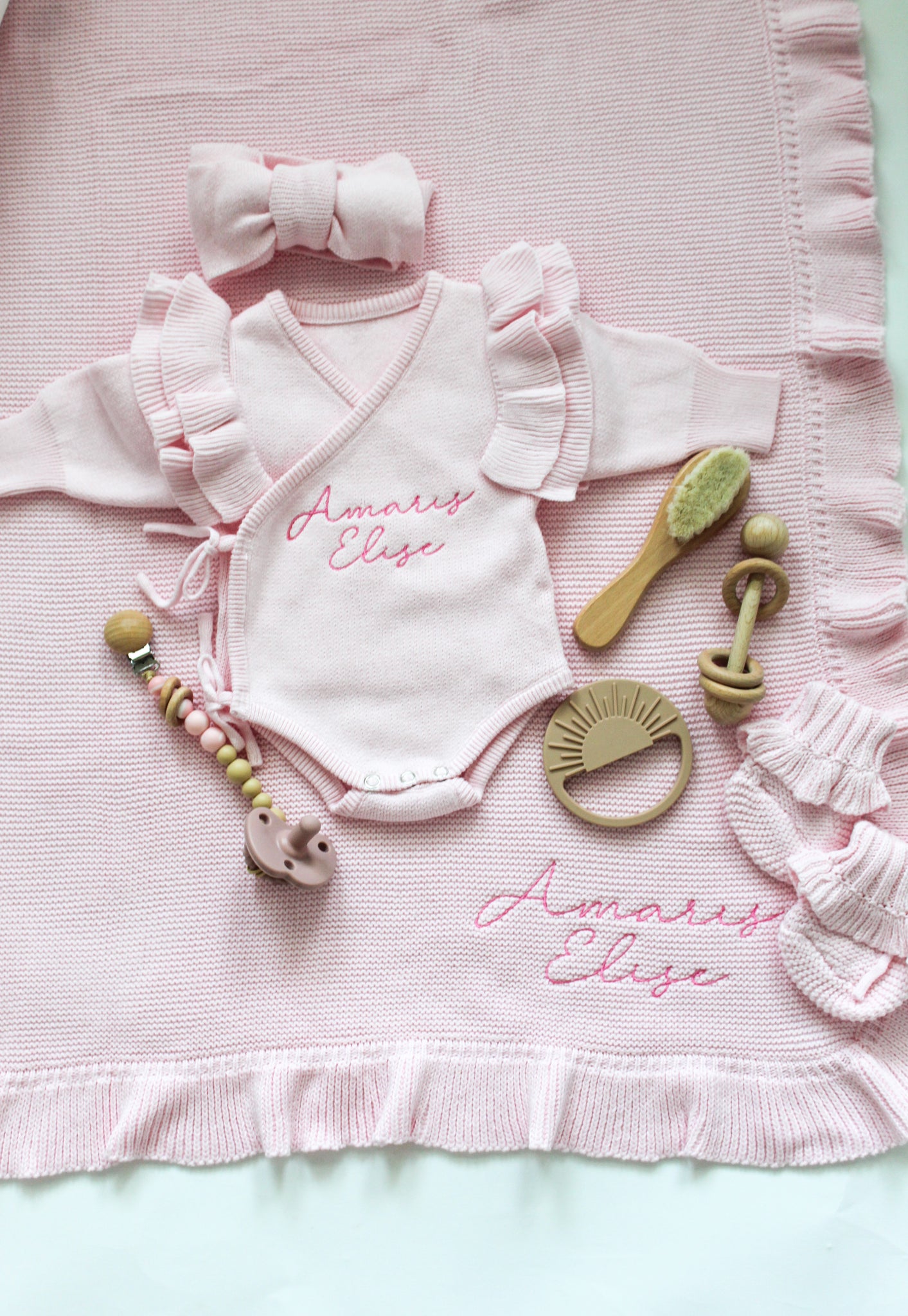 Personalized Pink Newborn Ruffle Coming Home Outfit & Blanket